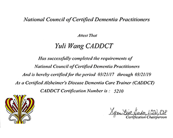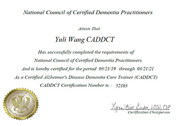 美国国家老年痴呆照料与护理专业教育讲师资格证书